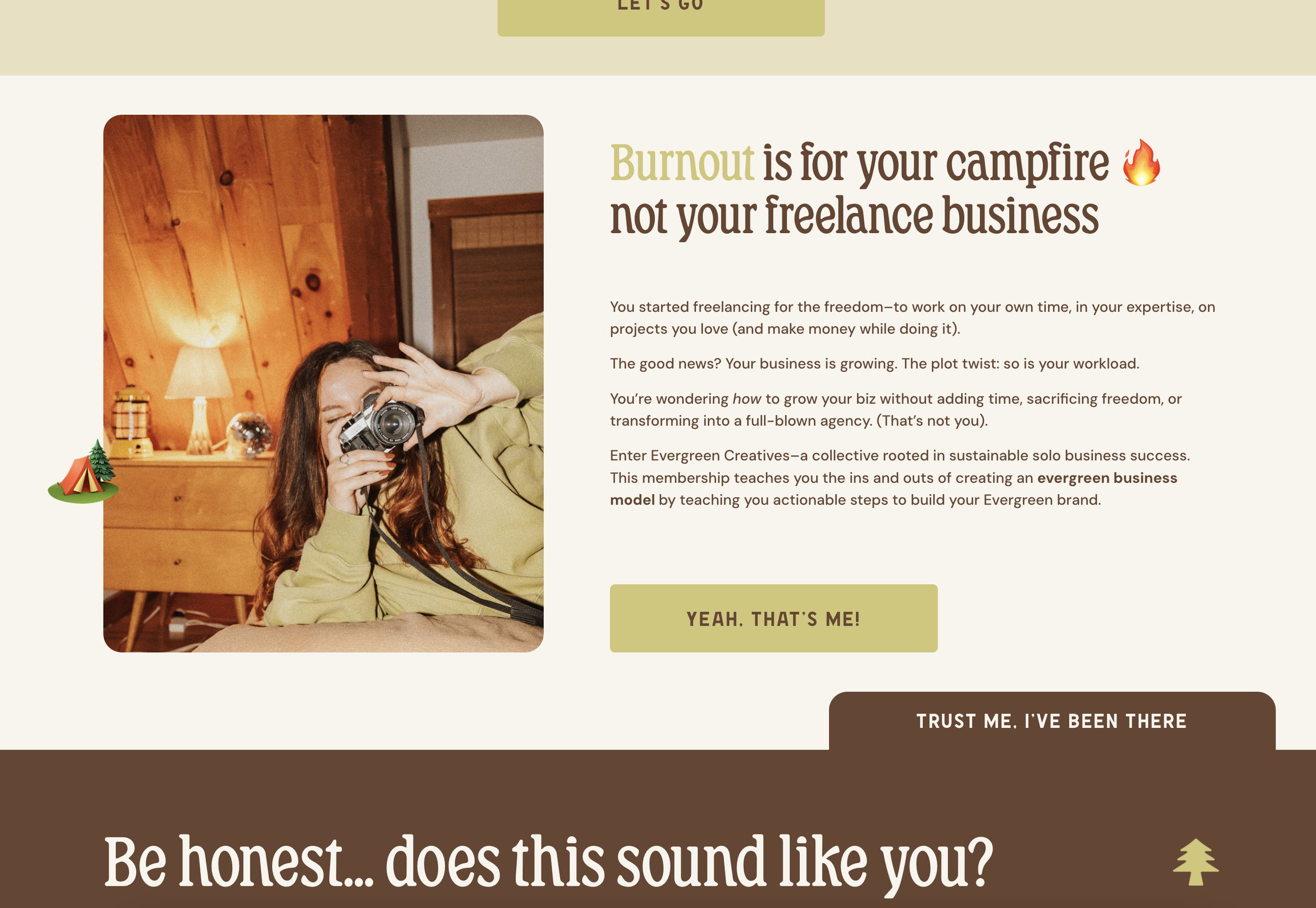 When Abby hired Boundless, she made it clear she wanted to lean hard into fun, summer camp vibes that didn’t just align with her branding but made her course feel like a must-join. We wanted fun and a dash of FOMO–because her dream people did not want to miss these campfire chats & killer lessons.
